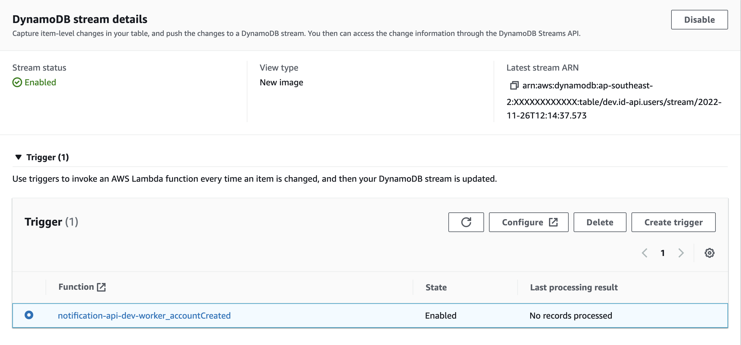 arn: arn:aws:dynamodb:ap-southeast-2:XXXXXXXXXXXX:table/dev.id-api.users/stream/2022-11-26T12:14:37.573